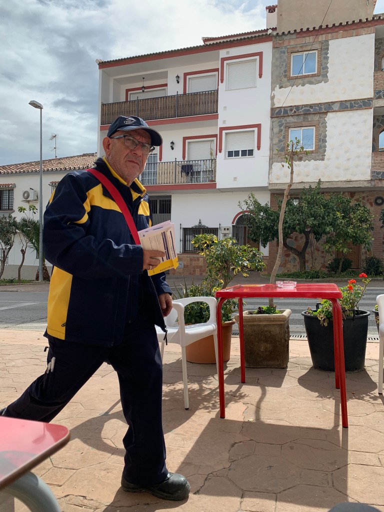 Der heutige Tag begann also mit Stornierungen und Neubuchungen (so ein schönes kleines Appartement, in dem ich hier sitze!) und dem Problem, dass auch in Yunquera kein Bus irgendwohin fährt. Immerhin hatte die Dorf-Panaderia geöffnet, so dass ich mich mit köstlichen süßen Brötchen versorgte und dann Richtung Tankstelle stapfte. Dort erhoffte ich mir eine Mitfahrgelegenheit Richtung Guaro (übernächstes hinter-andalusisches Dorf), wo gemäß meiner Recherchen ein Bus fahren würde. Ein nettes holländisches Paar hätte mich in ihrem Wohnmobil wohl mitgenommen, sie fuhren jedoch in die andere Richtung. Eine französische Familie desgleichen. Der Tankstellen-Andalusier hatte ein Einsehen und schlug eine Taxifahrt vor. Er organisierte mir dann auch gleich seinen Kumpel, der wenige Minuten später vorfuhr und mich TATsächlich nach Guaro brachte. Dort setzte er mich an einem Kreisverkehr aus und versicherte mir (zumindest habe ich das so verstanden), dort würde ein autobús a Marbella fahren. Ah ja!