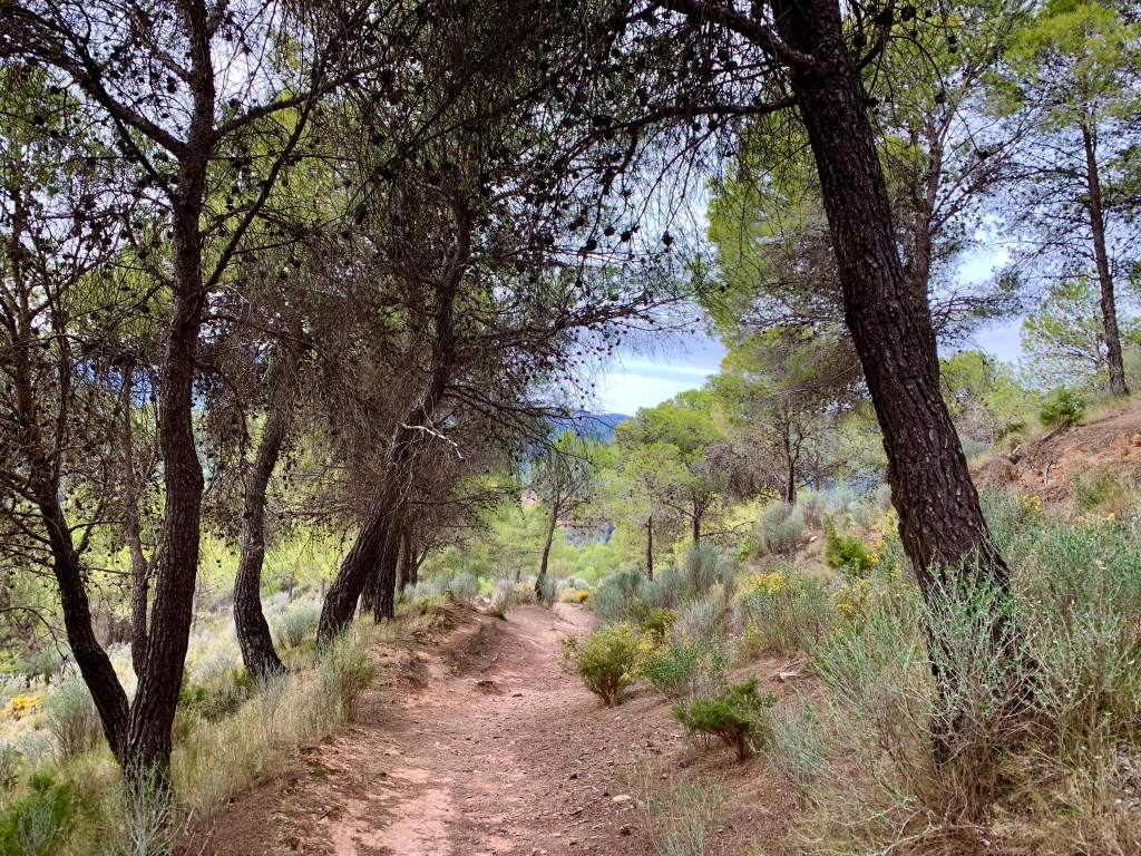 Der Pfad zeigte sich hübsch mit gelb blühendem Ginster und blau blühenden Rosmarinbüschen. Nach einigen Kilometern kamen wir an einen Parkplatz, wo doch tatsächlich ein paar spanische Autos standen. Den Menschen dazu sind wir nicht begegnet – wieder war es ein Mutter-Seelen-alleine-Tag.