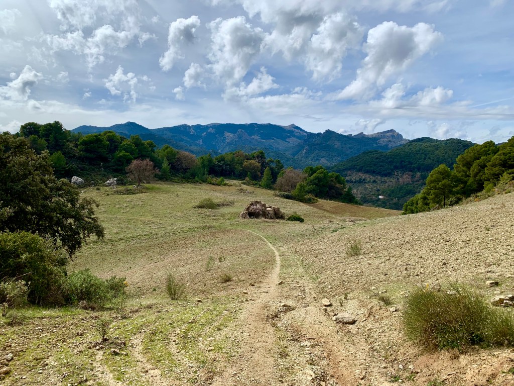 Der weitere Verlauf des Weges bot bei Sonne-Wolken-Mix immer wieder tolle Ausblicke hauptsächlich Richtung Süden, also Richtung Marbella und Mittelmeer. Leider lag der höchste Punkt unserer Etappe im Wald und auch danach (die letzten 5 km) waren die Strecke wenig fotogen und das Wetter zunehmend wolkenverhangen und regnerisch.