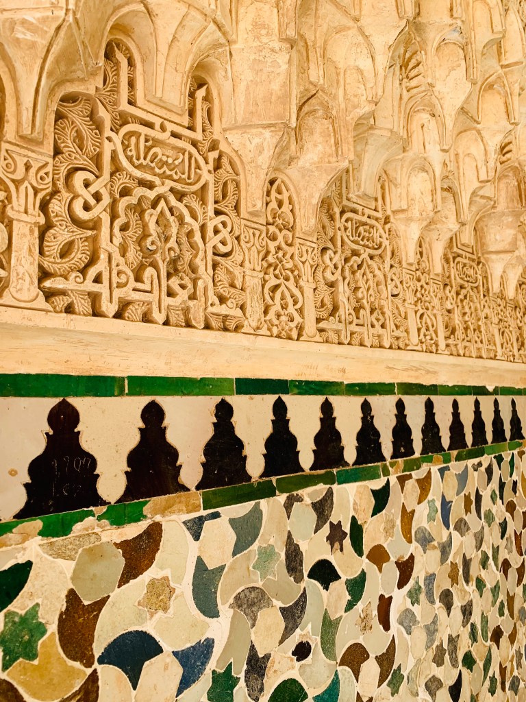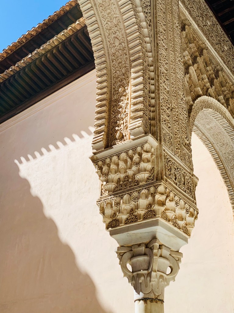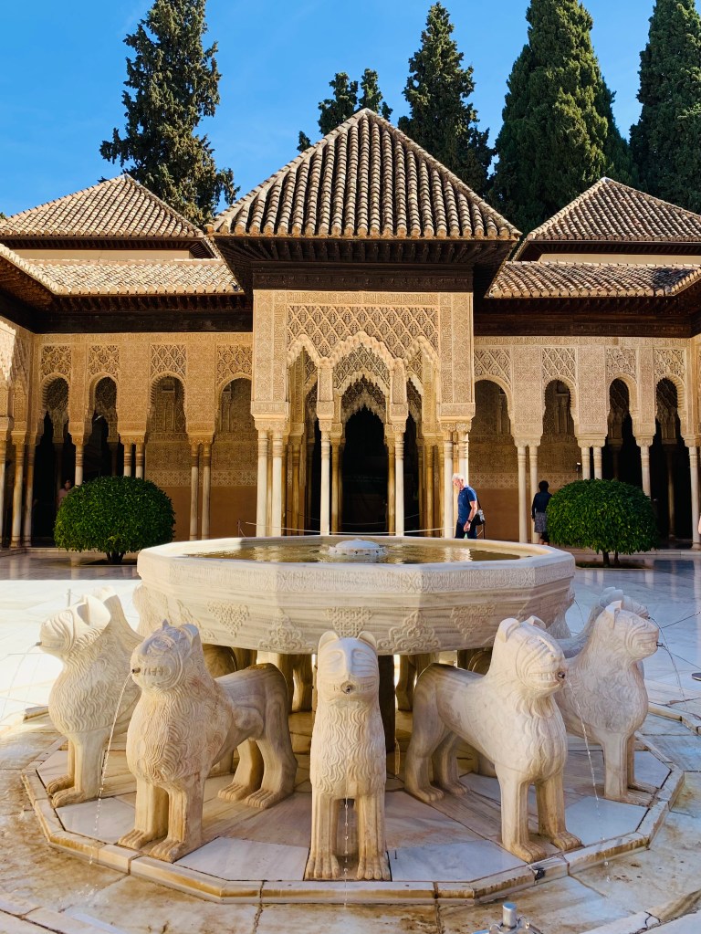 Kostbarster Kern der Alhambra und Fokus aller Smartphone-Aktivitäten ist der Nasriden-Palast, in dem diverse maurische Kalifen und Emire samt Harem ihr Unwesen trieben. Der Nachwelt haben sie reich geschmückte Räumlichkeiten mit Wasserspielen, Geheimtüren, Säulenhallen und Löwenbrunnen zur Ansicht überlassen – sehr freundlich!