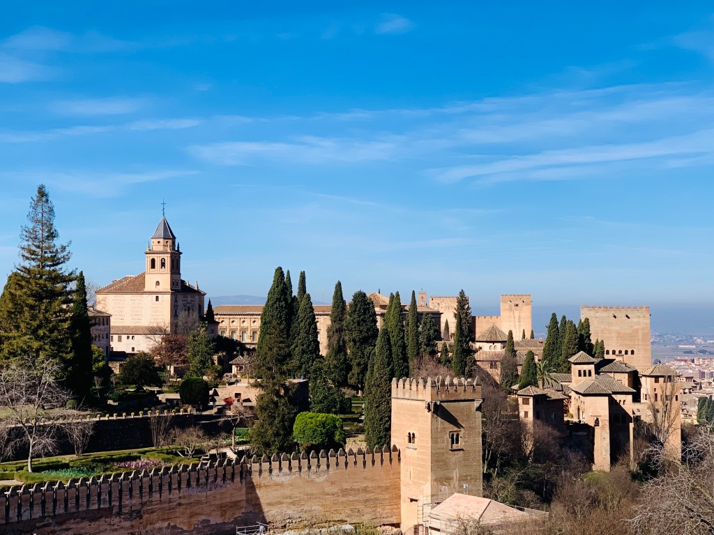 Am nächsten Tag (Sonntag, 12.03.) starteten wir früh, weil wir für 11 Uhr im guten alten Internet Tickets für die wundertolle Alhambra in Granada gebucht hatten. Wem das nichts sagt: Das ist eine SEHR weitläufige Stadtburg mit verschiedenen Burganlagen, Palästen, Türmen, Gärten etc. aus den letzten 10 Jahrhunderten.