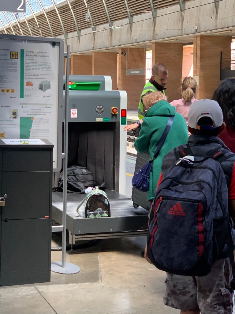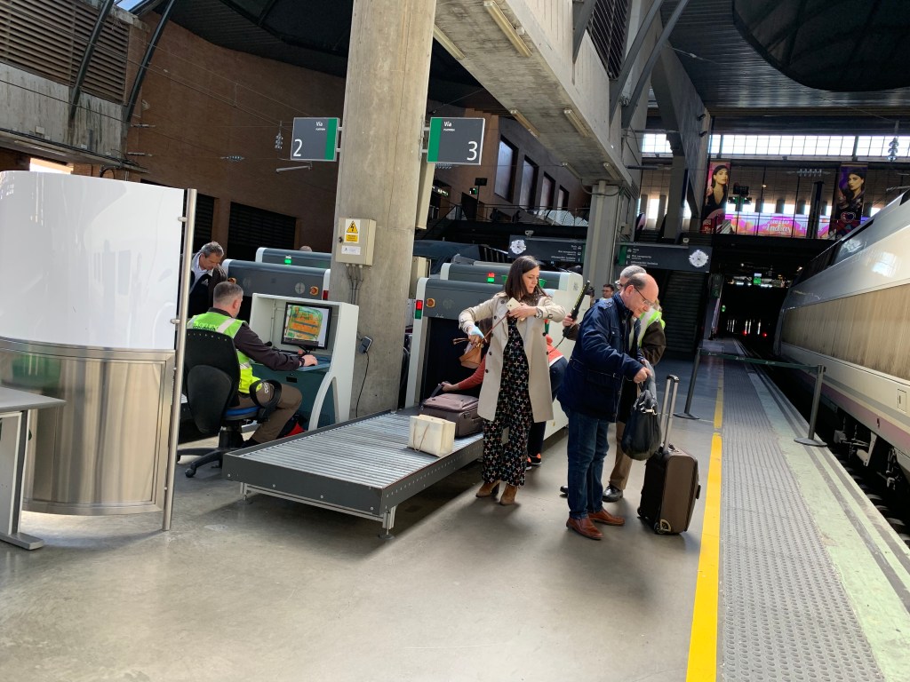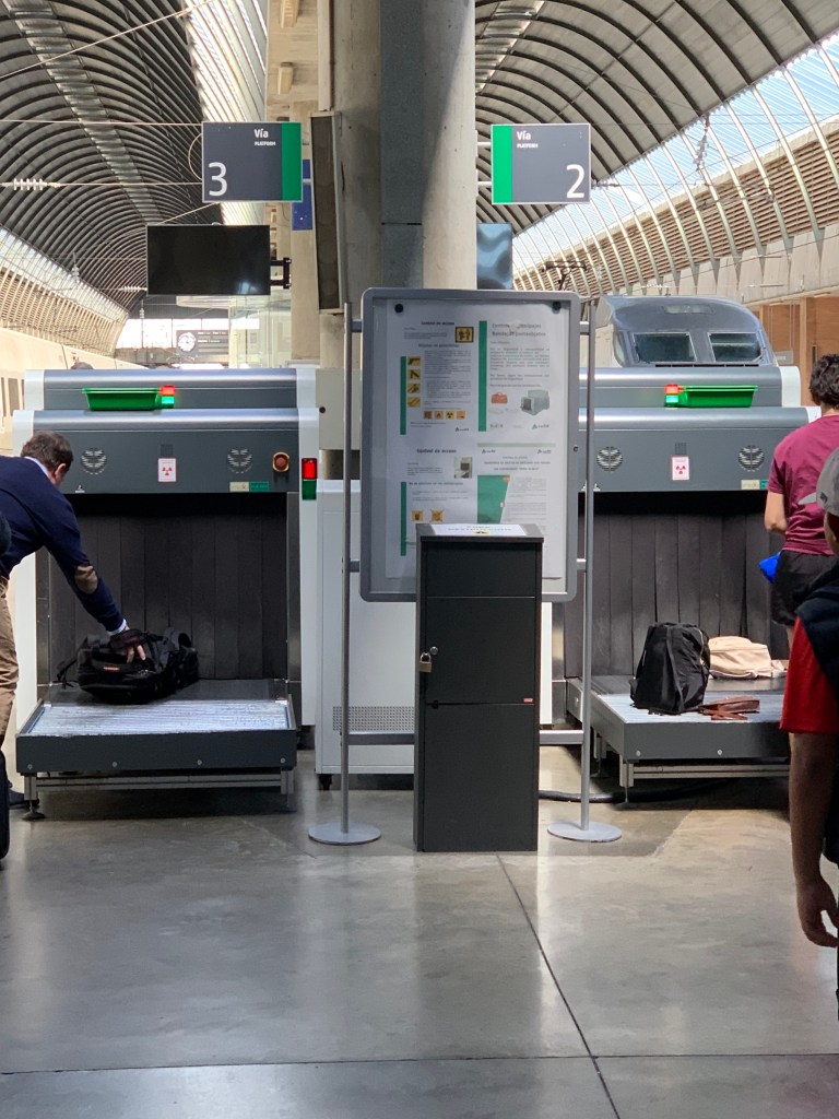 Zur aktuellen Reise-Lage: Jetzt war‘s doch gerade ein wenig brenzlig und mit ein bisschen weniger Glück wäre ich in Madrid gestrandet. Dazu muss man wissen, dass das Zugstreckennetz in Spanien zentral auf Madrid ausgerichtet ist und man, wenn man quer durchs Land will, immer über Madrid fährt und dort ggf. den Bahnhof wechseln muss (ähnlich wie in Frankreich und Paris). Ich hatte 75 Minuten, um von A nach B zu kommen, doch die Größe der Bahnhöfe (lange Wege), der Notfall in der U-Bahn (ausgerechnet jetzt!) und vor allem die Sicherheitskontrollen ließen es mal wieder recht knapp werden.