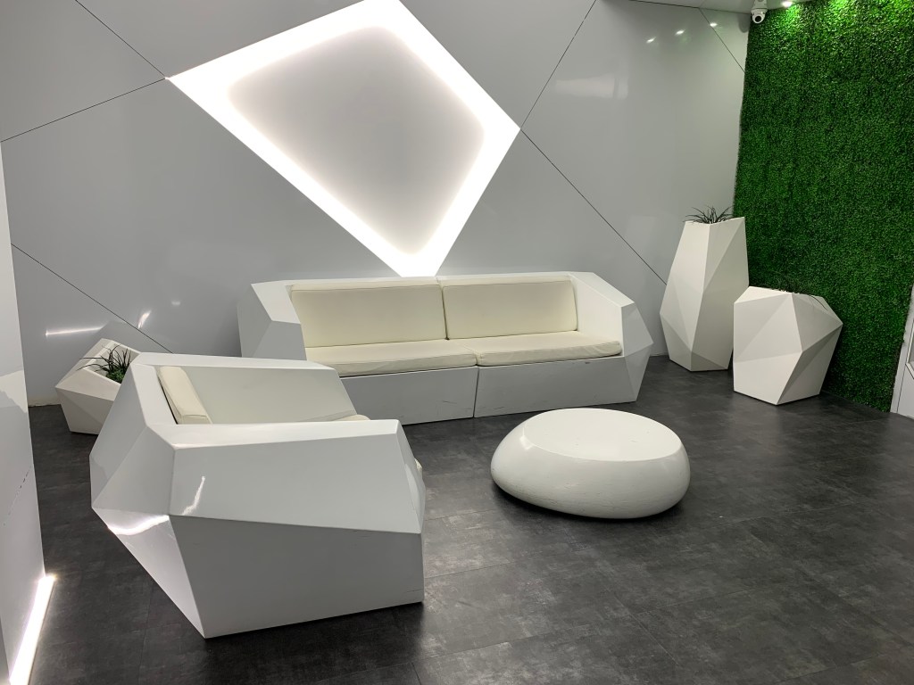 Das gesamte Etablissement sieht aus wie eine Mischung aus Raumschiff Enterprise und Raffaello-Werbung und ist insgesamt leider schon etwas abgeranzt. Aber für optische Langlebigkeit ist Weiß natürlich auch keine dankbare Farbe. Damit man die Kratzer und Kerben nicht so sieht, gibt’s überall Duster-Neonlicht, was meine grauen Haare RICHTIG gut zur Geltung bringt. Vielleicht will mir das Leben damit sagen: Du bist langsam zu alt für sowas.