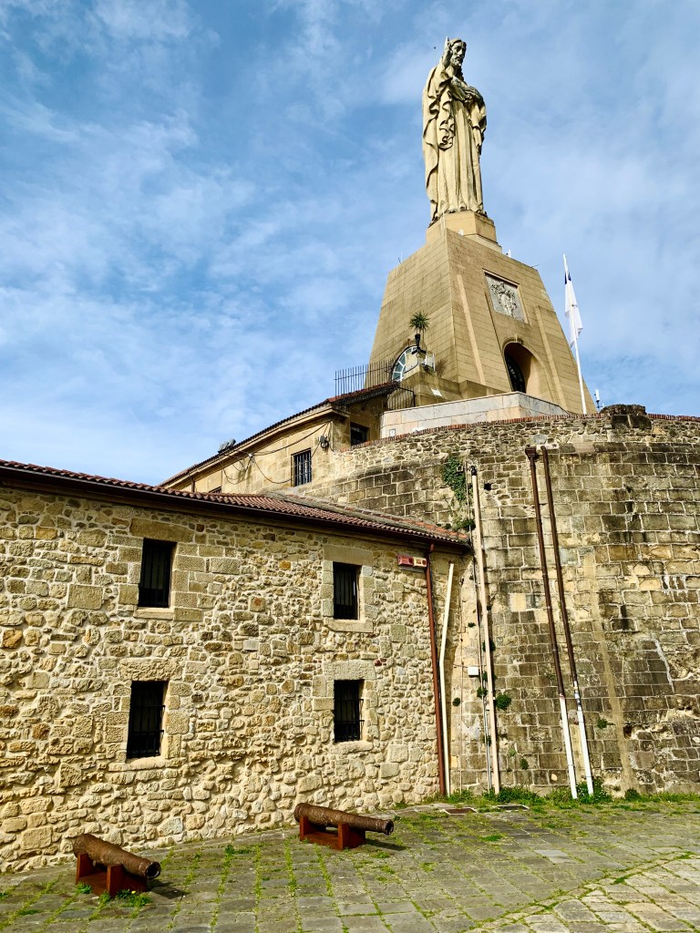 Auf halb-halber Höhe griff mich Paolo auf und wollte mir eines seiner selbst geklöppelten Armbändchen verkaufen. Die, die er hatte, gefielen mir aber nicht, also gab ich ein schöneres in Auftrag, und wir kamen ins Gespräch. Wiederum auf „Spanglisch“ tauschten wir uns über Festivals in Deutschland und Spanien aus. Derweil knüpfte er mit flinken Fingern ein Bändchen nach meinen Vorstellungen. Fein! Danach stieg ich hoch zum Monumento, einer Christus-Statue, die sie inmitten der alten Festung aufgebaut haben. Ein bisschen befremdlich ist es schon, wenn der Christus zwischen lauter Kanonen und Festungsgemäuer steht.