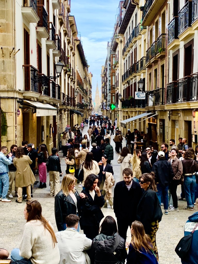 Zurück auf Meereshöhe tauchten wir ein in den Trubel der Altstadt. Es war unfassbar, was in den engen Gassen und auf den Plätzen los war. Offensichtlich sind wir wirklich in der Pincho-Hochburg schlechthin gelandet – eine Pincho-Bar reiht sich an die andere. Alle vollbesetzt (drinnen und draußen), überall Wein und Bier, Musik und gute Laune, teilweise wurde getanzt und überall gelacht. Die Trubelei mischte sich mit der nun tief stehenden Sonne und einer durch einen kräftigen Wind Gischt- und Salz-geschwängerten Luft. Es war HERR-LICH!