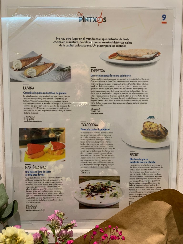 Beim Einchecken in der Pensión Easo (dankenswerterweise schon um 13:00 Uhr) wurde ich von der liebenswürdigen Pilar unmittelbar in die Grundlagen der Pinchos eingeweiht. Offenbar sind wir nun angekommen in der Mutterstadt dieser köstlichen kleinen Häppchen.