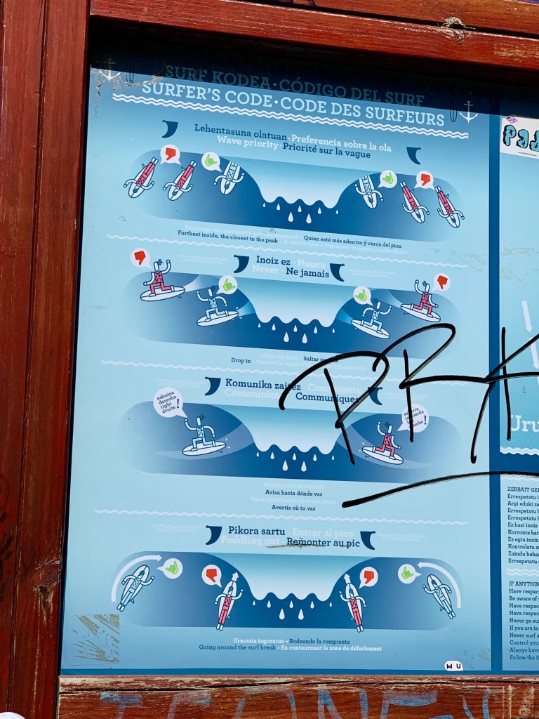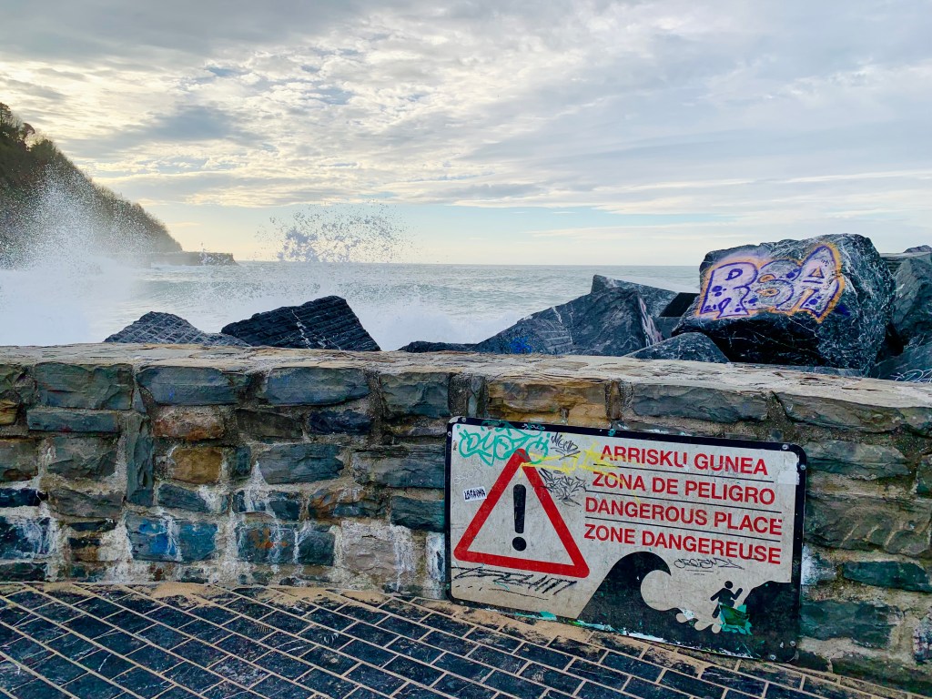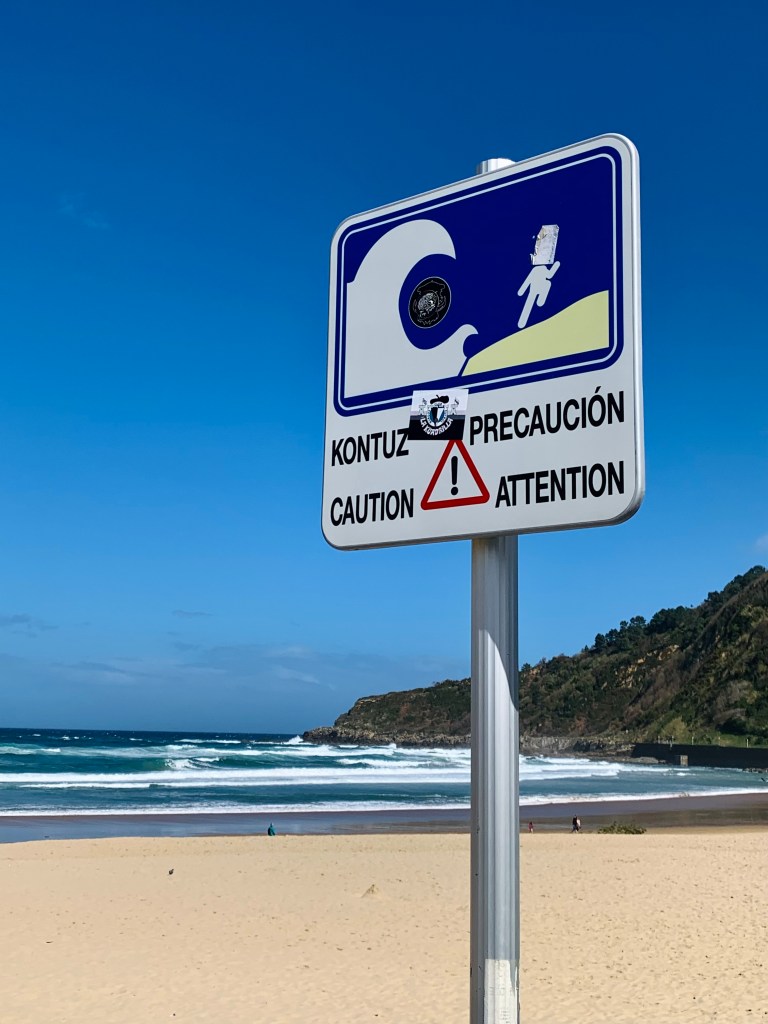 Um nochmals ein bisschen Meerluft zu schnuppern, wanderte ich zum Abschluss des Tages noch zum zweiten Strand der Stadt. Manche Städte sind lagetechnisch einfach gesegneter als andere und wo das so ist, mischen sich schon mal Surfer und Angler unters Stadtvolk. Auch wenn das auf den Fotos nicht so gut rauskommt: Wind- und Wellengang sind ordentlich hier an der Biskaya. Nicht umsonst warnen diverse Schilder vor Monsterwellen und deren Folgen.