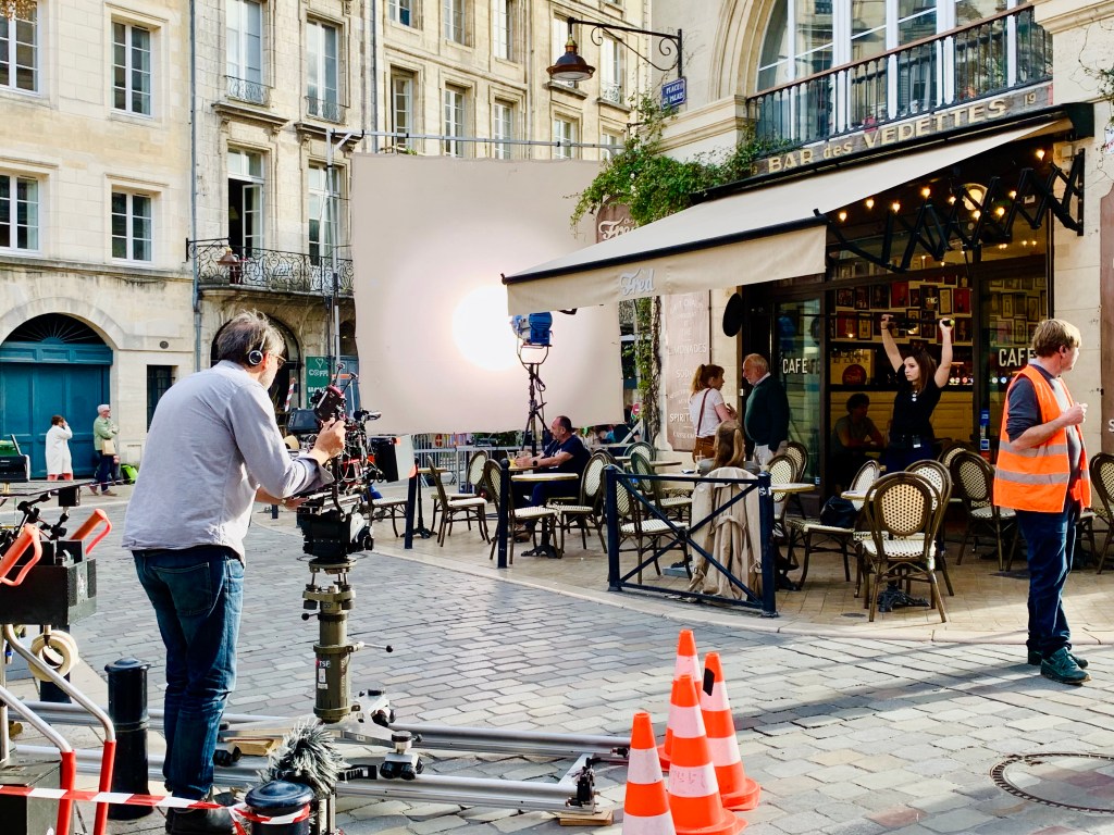 Zum Abschluss des Tages stolperte ich mal wieder über Dreharbeiten für einen Film. Die hübsch-hübsche „Bar des Vedettes“ bot das Szenenbild für ein Eifersuchtsdrama – so zumindest meine Interpretation nach dem dritten Cut. Die Umstehenden bestätigten dies und wussten außerdem zu berichten, dass die beiden Protagonisten in Frankreich doch recht bekannte Schauspielende seien. Bekanntheitsgrad: Tatortkommissar. Ah, oui!