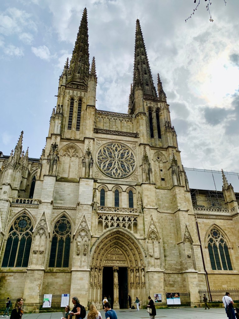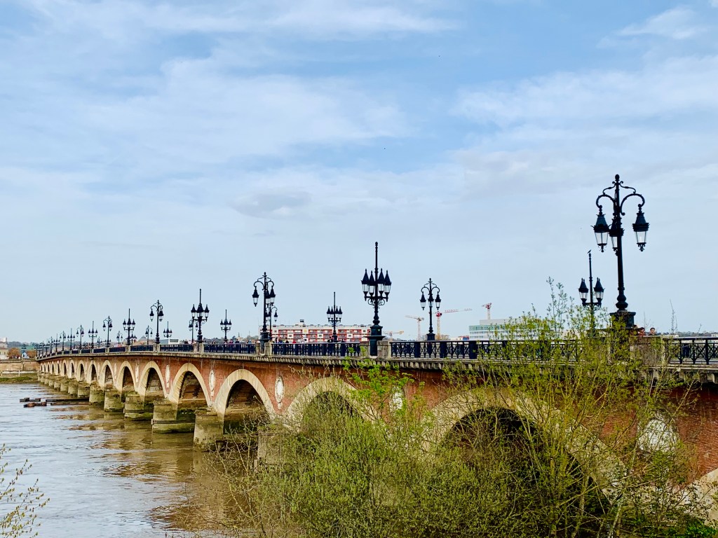 Nach Ausschlafen und Frühstücken ging’s dann wieder und ich zog los, um die Stadt zu erkunden. Das Auffälligste ist, dass Bordeaux und Umgebung wirklich topfeben sind und mittendrin die unfassbar breite Garonne träge in ihrem Bett liegt. Ich glaube, ich habe noch nie einen so breiten Fluss gesehen. Außerdem gibt es – bis auf die Kirchen – keine wirklich hohen Gebäude in der Altstadt, und alle Straßen und Plätze sind eher großzügig angelegt. Ich fühlte mich heute den ganzen Tag irgendwie an ostpreußische Garnisions-Städte erinnert (obwohl ich da noch gar nie war).