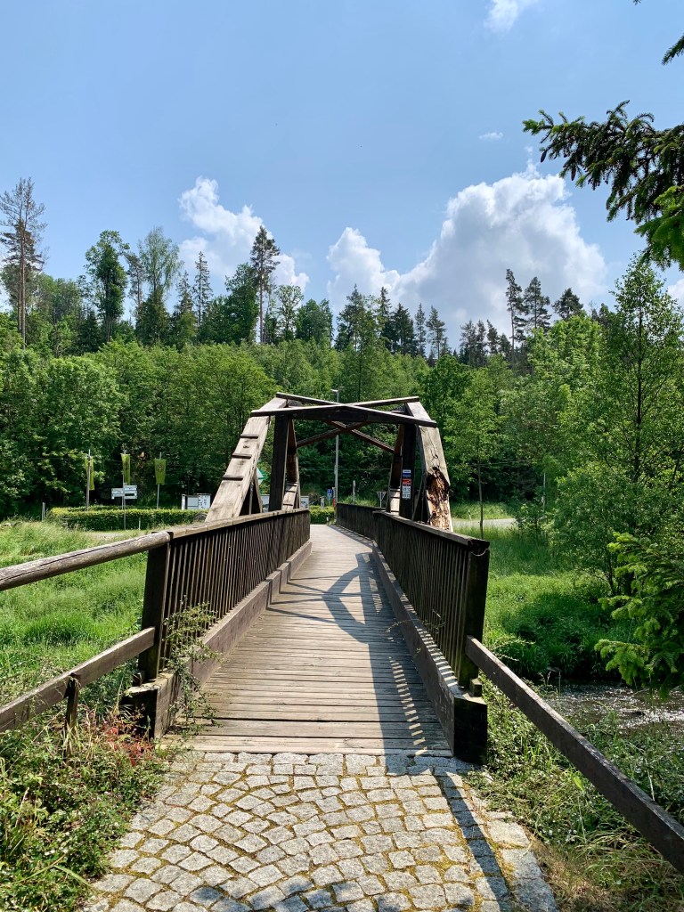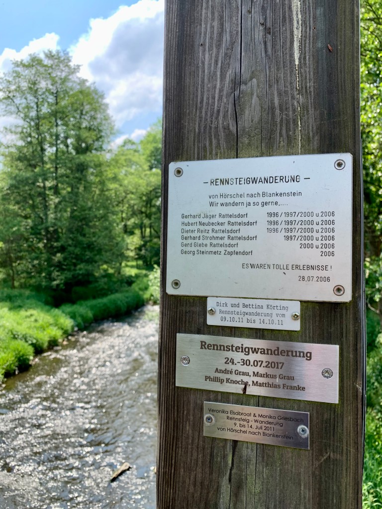 Der Start-End-Punkt des Weges ist die Selbitzbrücke, an der sich denn auch diverse Rennsteig-Geher mit einer Plakette verewigt und damit bestimmt unsterblich gemacht haben.
