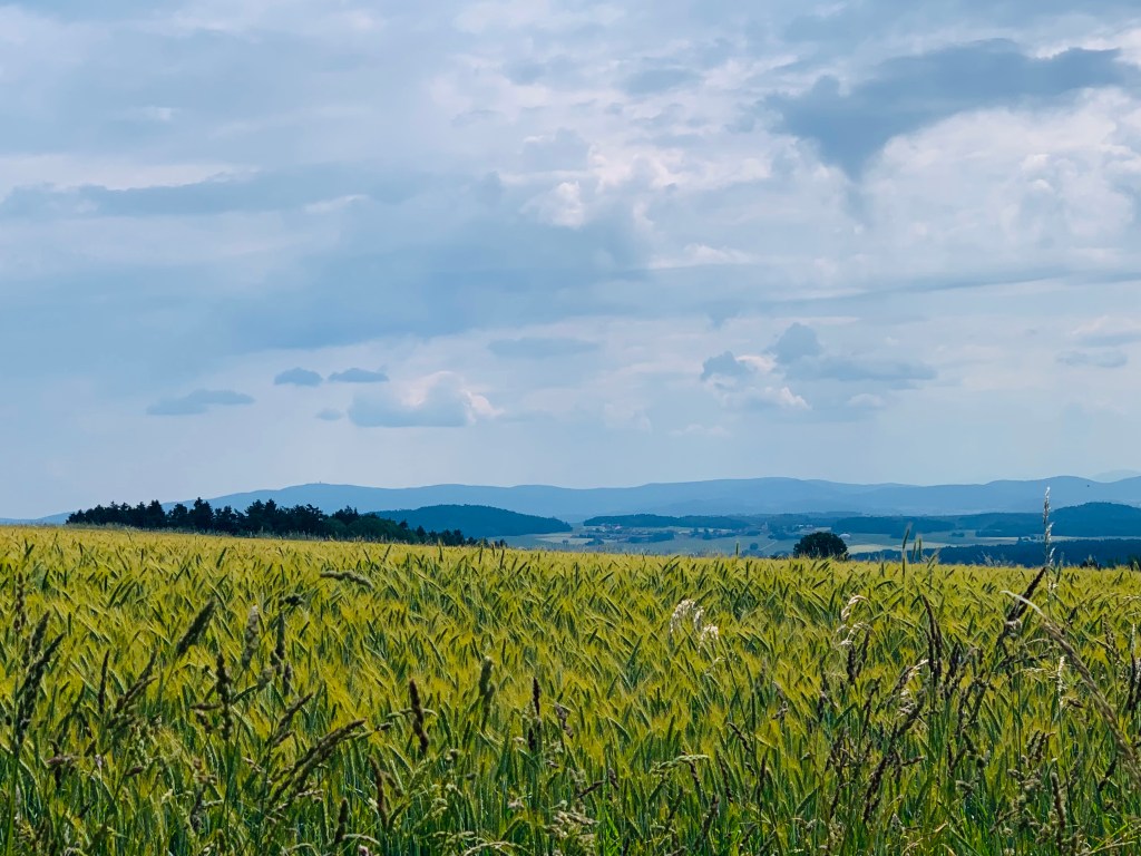 Von Oberviechtach ging es hinauf auf den Berg mit einer ersten schönen Aussicht auf den bayerischen Wald, durch den wir die nächsten beiden Wochen zu wandern gedenken.
