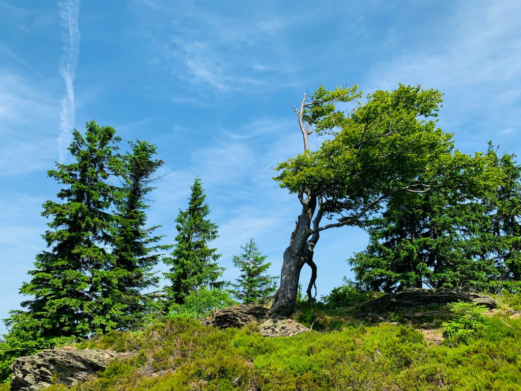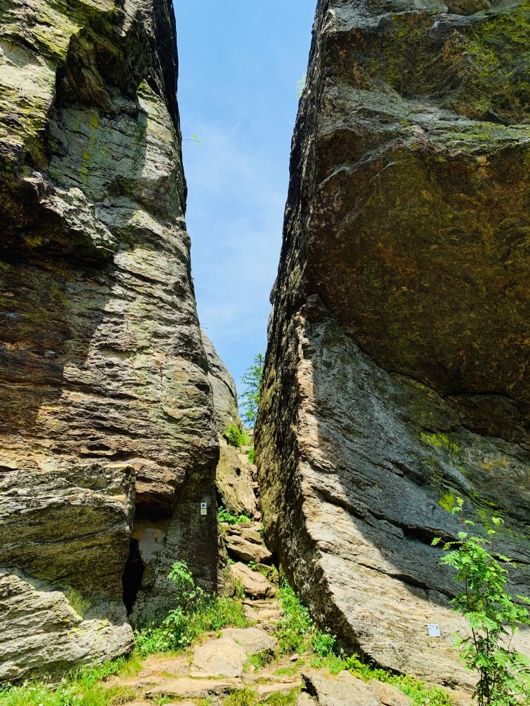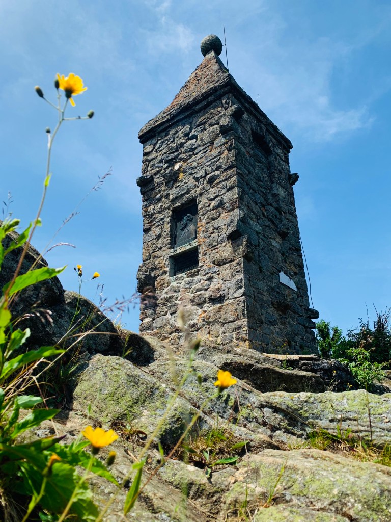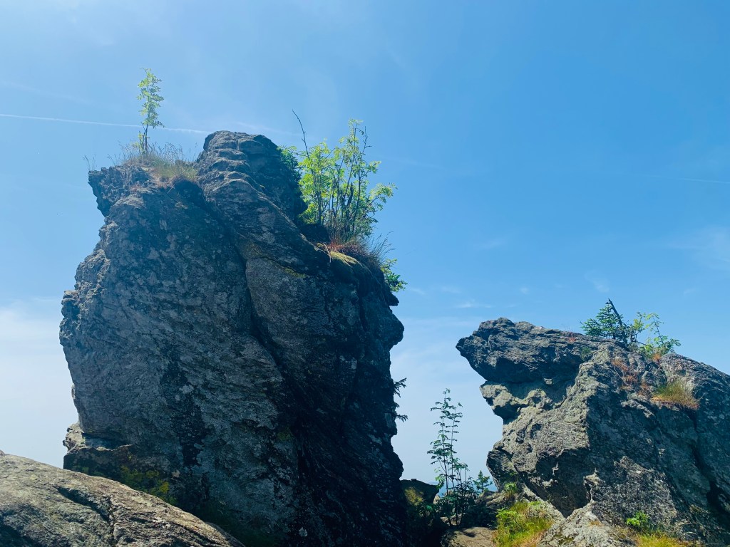 Ein besonderes Erlebnis waren die Rauchröhren, über 30 Meter hohe Felstürme, die eine Art Kamin bilden, durch den bei entsprechendem Wetter der Nebel nach oben zieht. Heute kletterten nur wir da durch, was ziemlich alpin anmutete und mich kurzzeitig etwas forderte. Letztes Highlight (haha) war dann der Große Riedelstein mit seinen 1.132 Metern und dem hübschen Steintürmchen auf der Spitze.