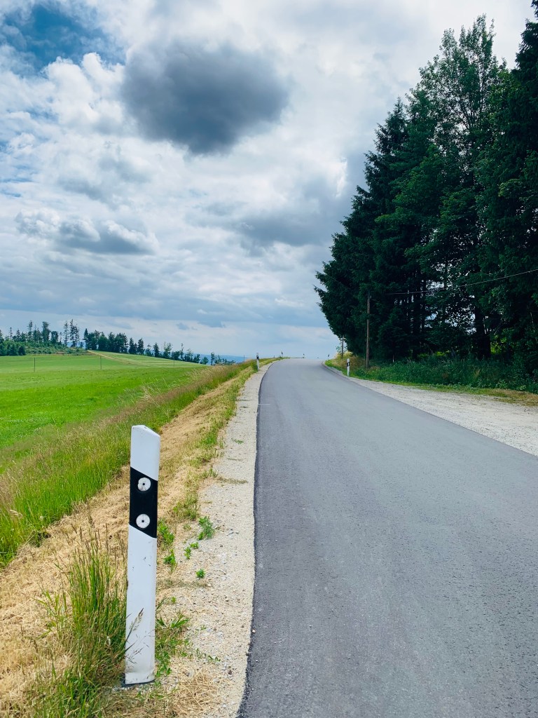 Heute Morgen war die Stimmung aufgrund einer mückenzerstochenen Nacht missmutig und der Himmel grau. Wie ich gestern noch von einer Abendessens-Bekanntschaft erfahren habe, stehen heute und morgen die obligatorischen Fernwanderweg-Rausschmeißer-Etappen an (Landschaft nix schön, viel bewohntes Gebiet, viel Asphalt) – noch zwei Tage bis Passau, dem Ende des Goldsteigs. Ich war also auf alles gefasst. Letztlich waren es dann 25 mittelschöne Kilometer nach Hauzenberg.