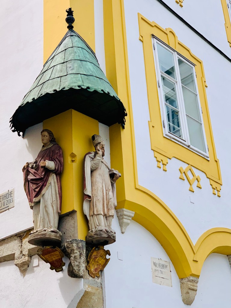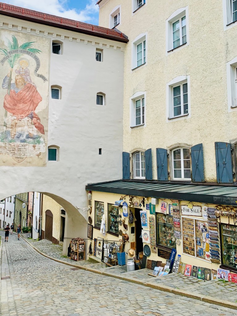 Gestern war ich immer noch ziemlich derangiert, tapste aber dennoch nach einem kleinen Keinen-Appetit-Frühstück ein wenig durch die Passauer Altstadt. Diese war bevölkert von Fluss-Kreuzfahrern (Donau-auf- und -abwärts) und Donau-Radweg-Radlern und bietet Einiges an Bayerisch-Königlich-Bischöflicher Stadtarchitektur.