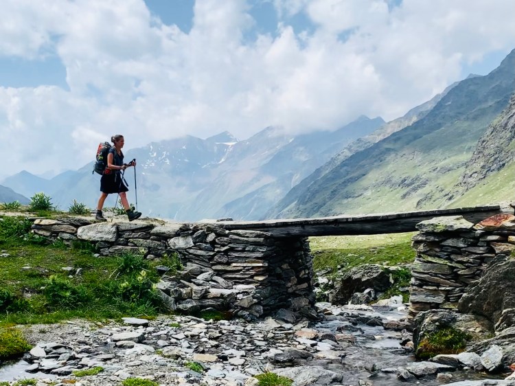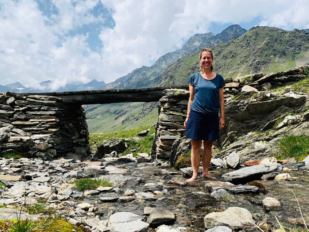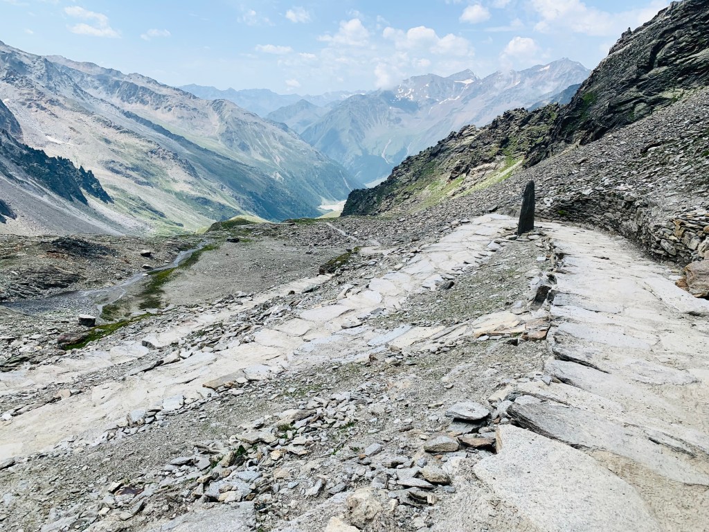 Der Morgen in Pfelders begann früh, da eine recht lange Etappe mit ganz schön vielen Höhenmetern anstand: Über 17 Kilometer erst 1.200 Meter rauf zum Eisjöchl nahe der Stettiner Hütte und dann 800 Meter runter zum Eishof im Pfossental. Der erste von drei Tagen auf dem Meraner Höhenweg – den ich allerdings entgegen der üblichen Wanderrichtung wanderte.