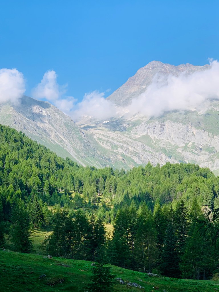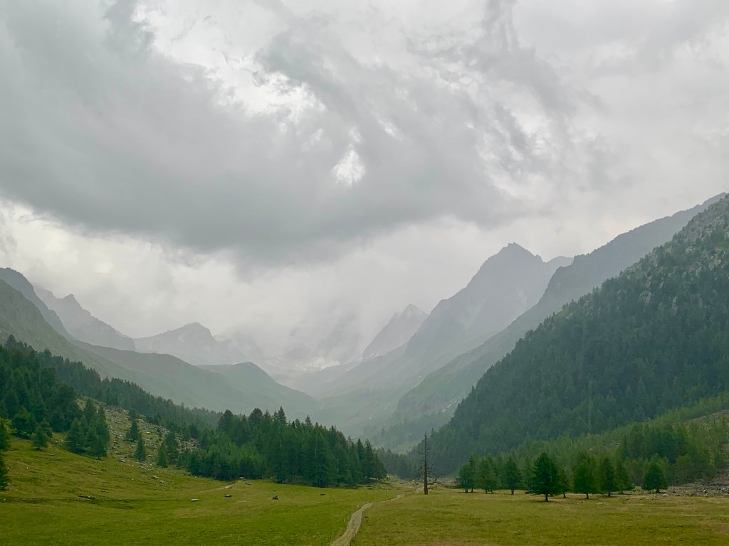 Zuerst ging es gemächlich durchs schattig-kühl-bewaldete Pfelderertal zur Lazinser Alm, die dort Heidi-mäßig zwischen dunklen Tannen und grünen Wiesen – na, ihr wisst schon – am Talschluss liegt.